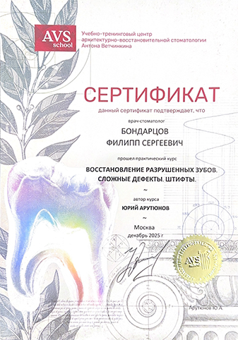 Филипп Сергеевич cпециализируется на лечении кариозных и некариозных поражений зубов, а также осложнений, вызванных кариесом. Проводит перелечивание ранее леченых зубов, в том числе в сложных клинических случаях, и занимается восстановлением сильно разрушенных зубов с применением современных методик и материалов.